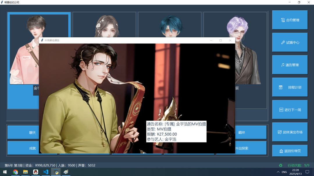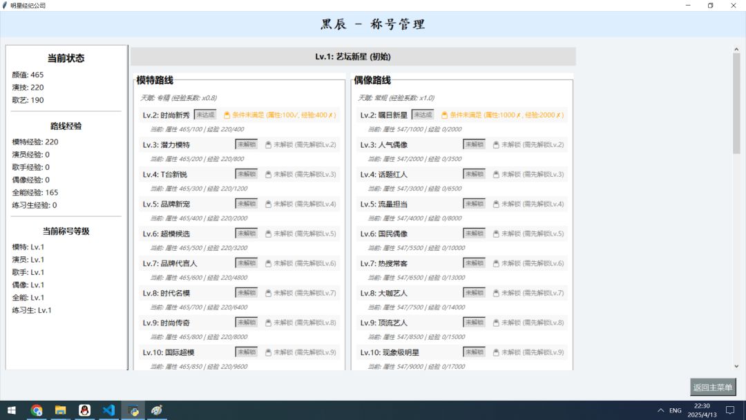 称号系统: 提供了更明确、更多样化的艺人成长路线和目标。