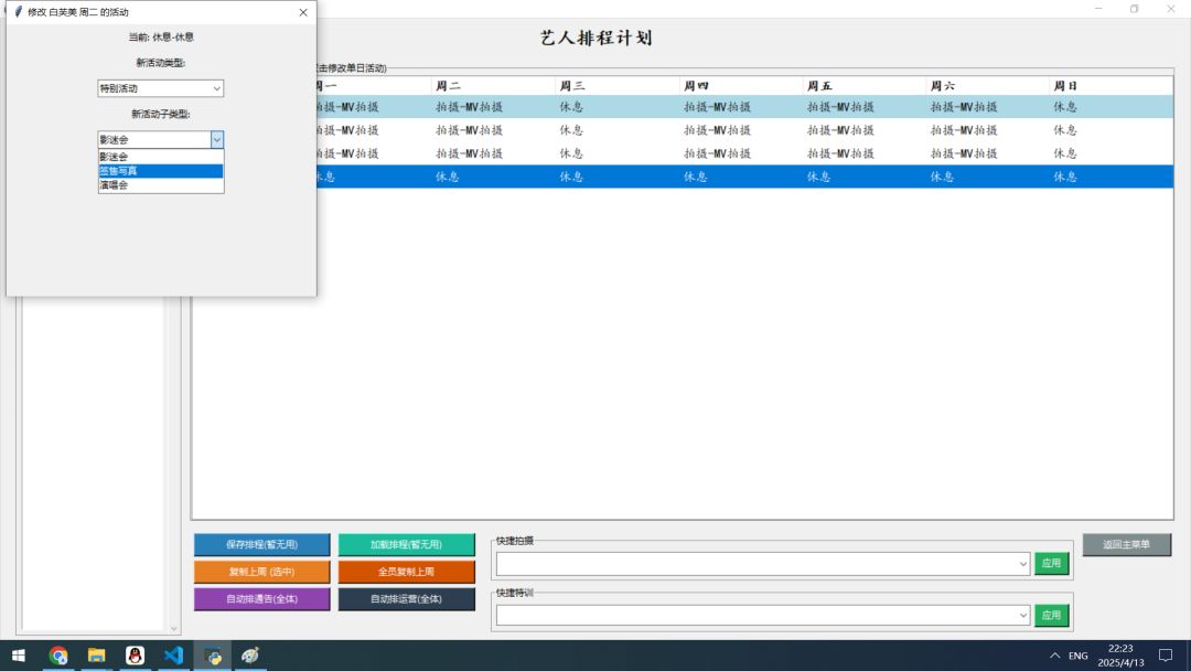 游戏继承了经典的艺人养成、日程安排、通告执行核心玩法,还引入了全新的大地图探索系统,让你走出公司,在广阔都市中触发各种奇遇事件,解锁隐藏地点和专属事件(全部剧情可修改!若不满意或想要自制剧情,可以通过修改游戏的JSON剧情文本实现)。独特的“超级新星”系统带来更具挑战性的特殊艺人养成线。紧张刺激的卡牌竞演让你与其他势力一较高下,丰富的艺人称号系统提供了多样的艺人成长路径。