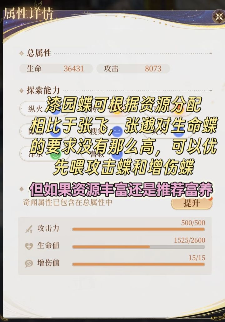 优先喂攻击蝶和增伤蝶。有资源的可以富养。命盘核心:+3风强
