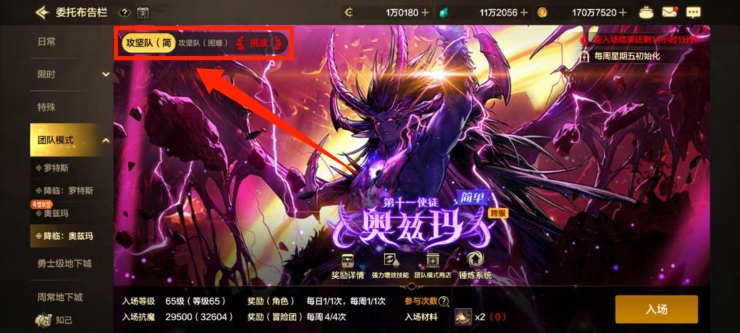 攻坚人数:1~3人,单人也可开启降临:奥兹玛任意难度