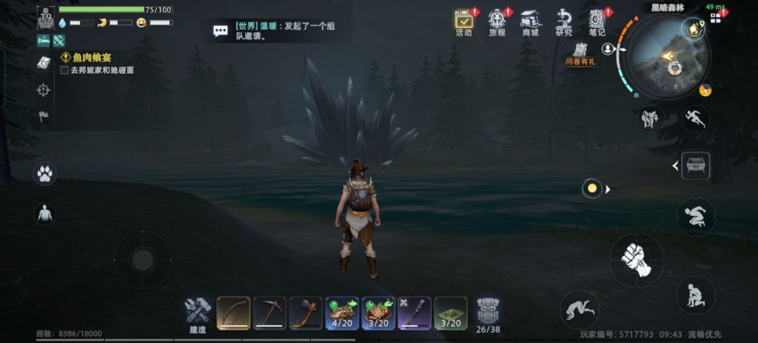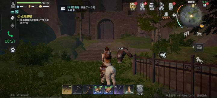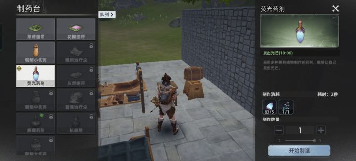 顺着路走有一个荧光果,见了就拿,用来做10分钟让身体发光,可以丢出去持续120光芒,然后可以碰见一个黑猪,黑狐,黑狐材料有大用,碰见就打,用来装备材料必须品,顺路右边走,有一个传送点。先来解锁。然后回家做一个药剂开启出发