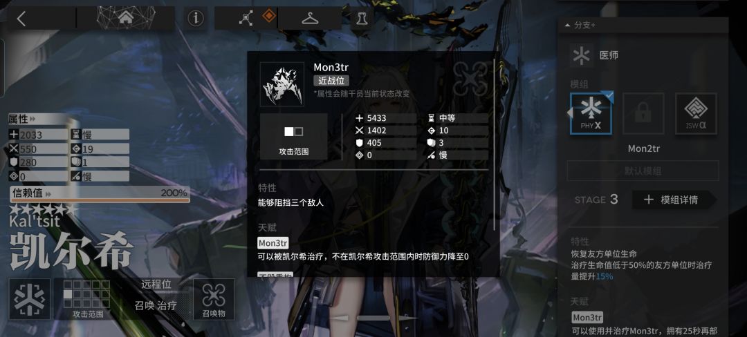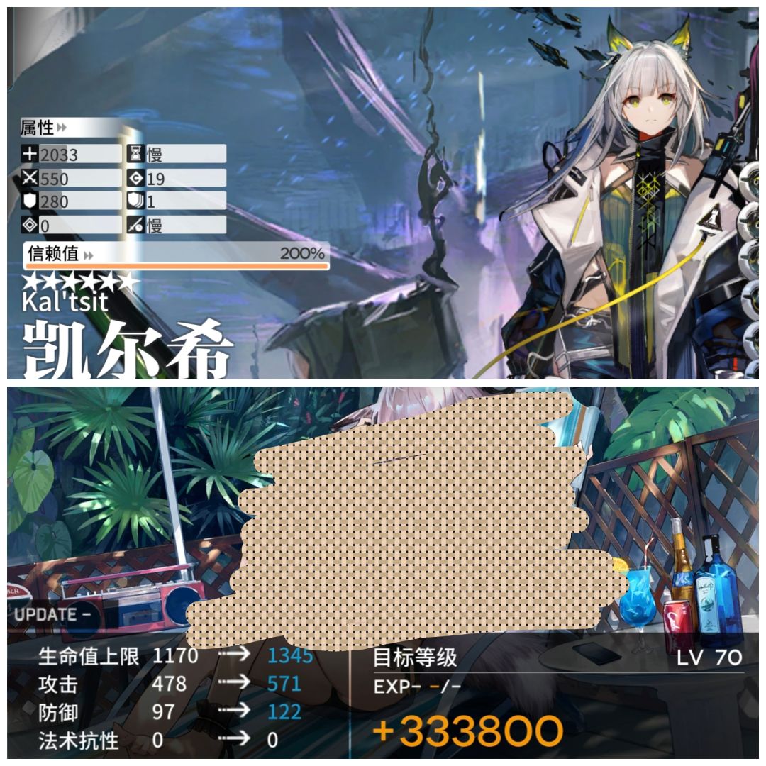 ③凯尔希作为一个六星医疗精二90级的攻击力只有550,而苏苏洛精二70级则有571。