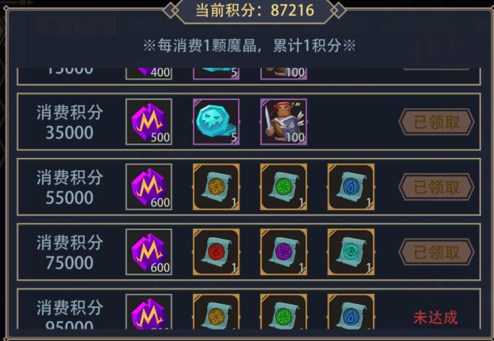 魔晶消费87216约等于1212抽