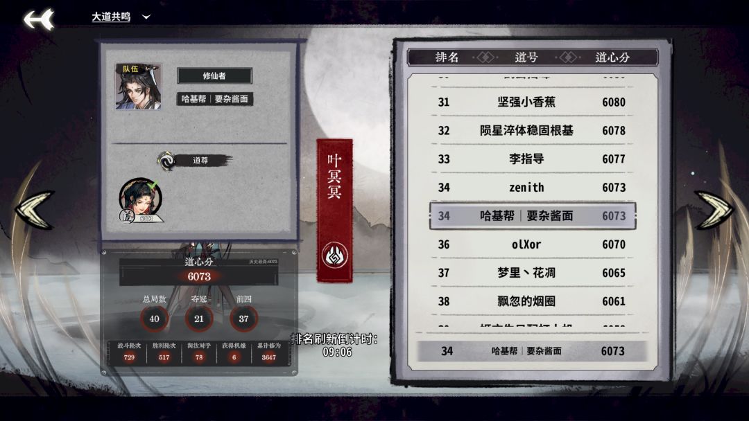 。来分享一下我的上分心得,可能在六千分以上没那么适用,但想拿“蟾光永夜”称号的道友们可以来看一看噢。叶冥冥光速上道尊心得分享
