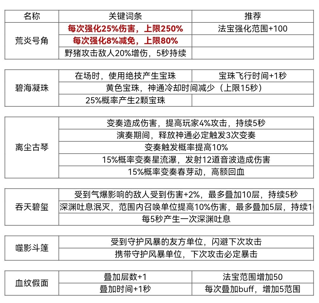 法宝荒炎号角、离尘古琴可追完美词条,