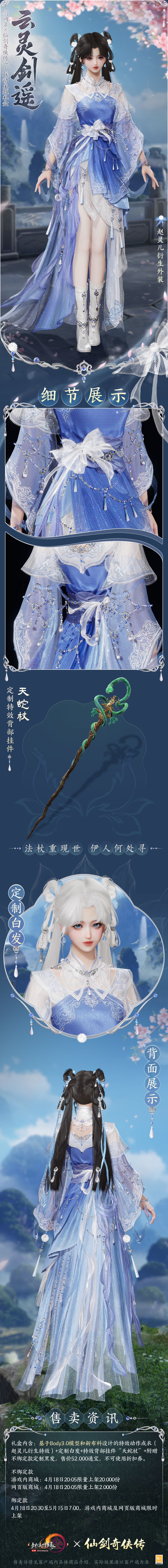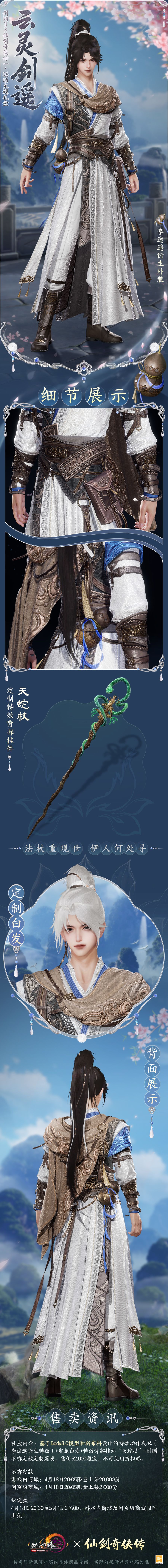 永忆江湖初相逢,《剑网3》×《仙剑奇侠传一》联动主题外装礼盒“云灵剑遥”从李逍遥和赵灵儿的经典形象出发,在保留原角色风采特点的同时进行衍生创作,基于body3.0和新布料制作特效动作成衣,更显侠士潇洒风流!