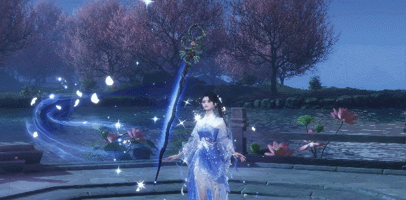女款绒绒发饰缀于乌发,碧蓝深浅诠释温柔意韵,鲛纱层层却更显轻盈,鎏银珠链于日光下熠熠生辉,正是纯真灵动,玲珑可爱,流露出几分恰似赵灵儿的无限柔情。开启服装特效后,女侠将踏莲而来,流星划过静谧夜空,仙岛碧波似游龙荡于身侧,涛叠浪涌!