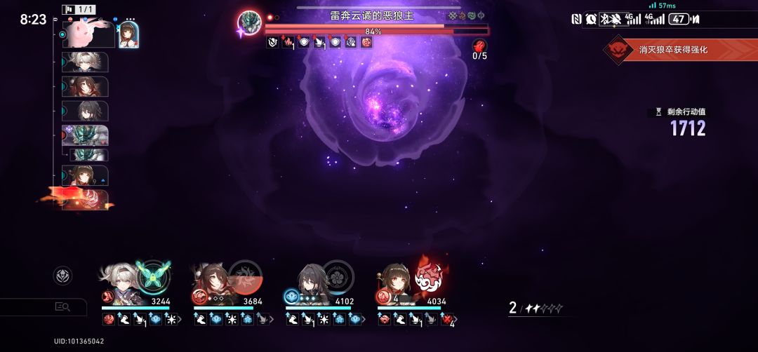 可下半场步离战首狼王也会先锁弱点,也会召唤小狼(我留言主攻火弱点小狼也无法一次耗光它韧性条),并在一回合后让玩家派出一名角色进行单挑,除非在单挑中击败或者清空boss的韧性条,否则回到正常对战状态时,狼王还是锁弱点状态,等会儿还得单挑。流萤击破队在个人所有组队中算是最高练度的队伍,本以为可以轻松战胜有火弱点的狼王,可事与愿违。