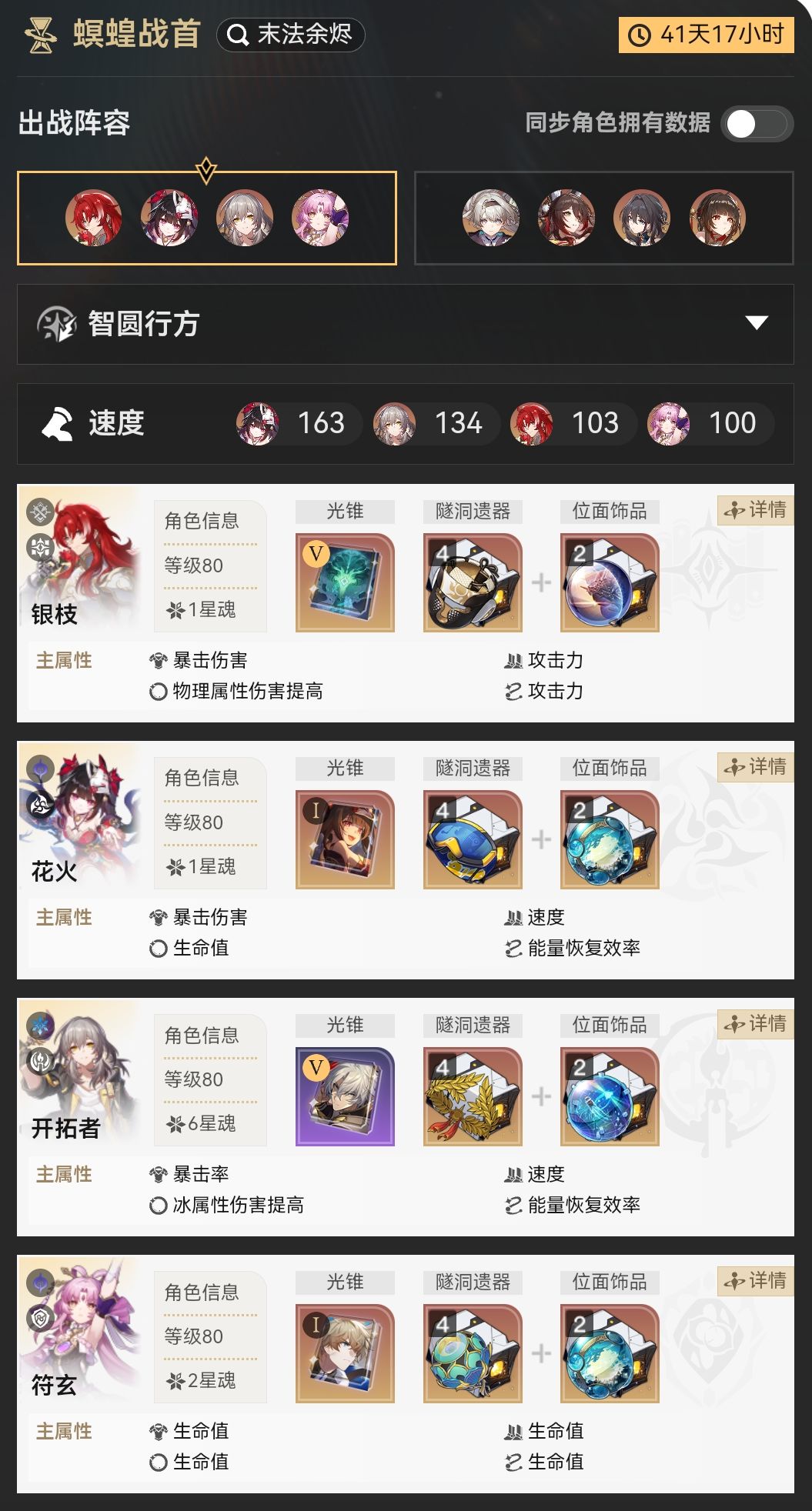 可是,如果我没有灵砂呢?或者没有忘归人(1魂)和阮梅的增加击破效率呢?那这一关个人就别想满星了。不知道大家对这次的关卡设计感觉如何?锁弱点的直接影响就是击破队,无论你是否哦变通的方式,总之就是有意打压击破队的效果,为记忆队铺路,不知我的牢dot队何时才能翻身,有dot机制的物理生存位快来吧。