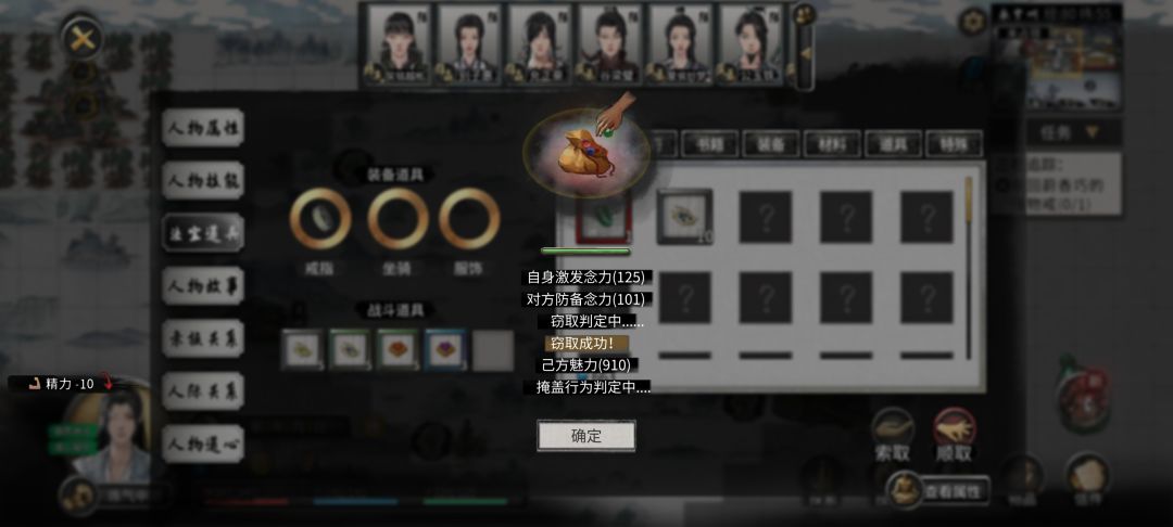 魅力值(影响过月结算修士互动,初次对话修士好感值,偷取物品被发现几率等)
