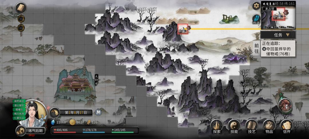8.出来后在新达镇,右上角小地图旁边有个传送按钮(需要开插件,后面不在赘述)。传送到开局救人的宗门,解锁永宁州地图。