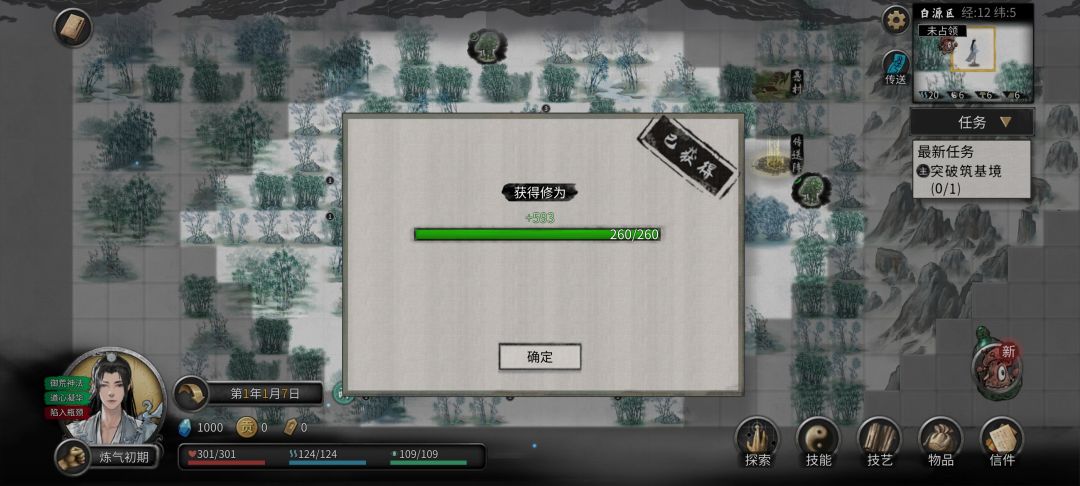 10.修仙讲究个财侣法地,法和地已经搞定,接下来就是财了。此时道友身上应该刚好有1000灵石,TP回到刚开始的小镇,旁边有个灵气充沛之所——修炼。