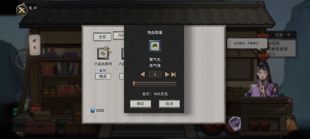 回到城镇坊市买聚气丸——突破至中期(坊市多进出几次,有个小老头给灵石的奇遇。李四卖的聚气丸,洪荒模式比坊市便宜)