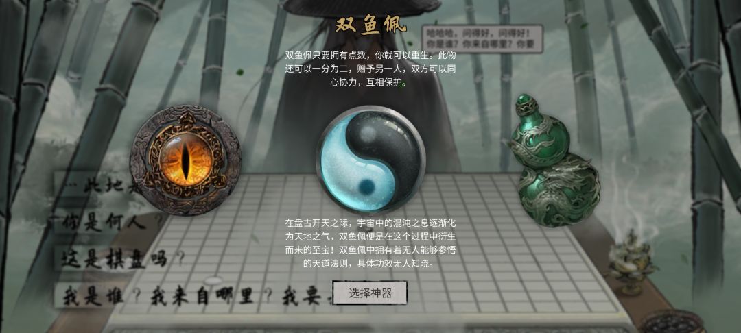 进入竹林,选择神器—双鱼佩