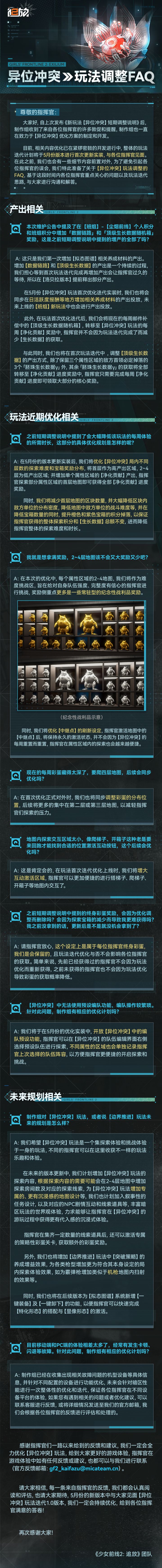 在此之前,我们特此准备了关于【异位冲突】玩法调整的FAQ,基于这段时间内各位指挥官重点关心的问题以及玩法迭代思路,与大家进行沟通和解答。