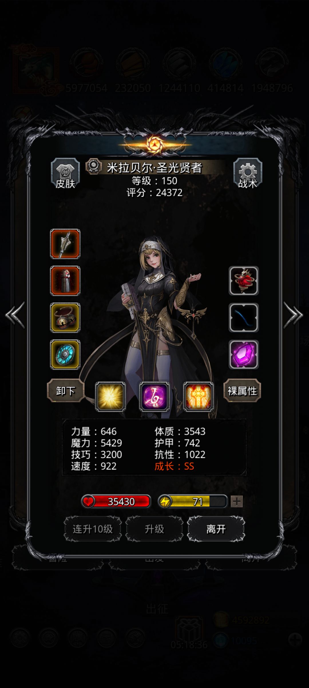 刷脸刷了三四天,血量很重要,魔石的15命中也有点重要。其他的就是刷脸了。神官带了一个体质战利品,10690奶。其他的战利品都是魔技回复战利品。