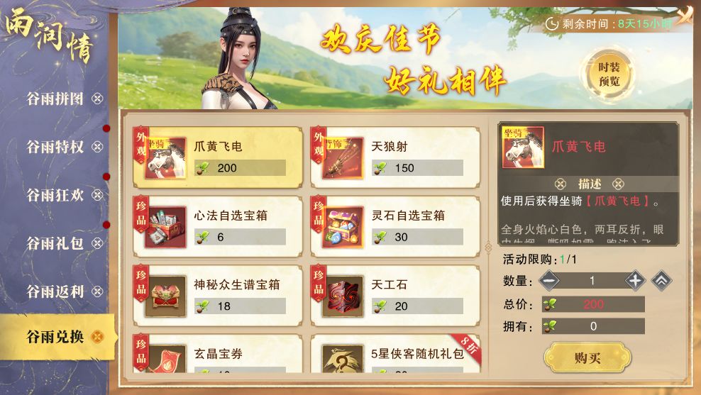 六、谷雨兑换 —— 珍稀宝物任您挑选