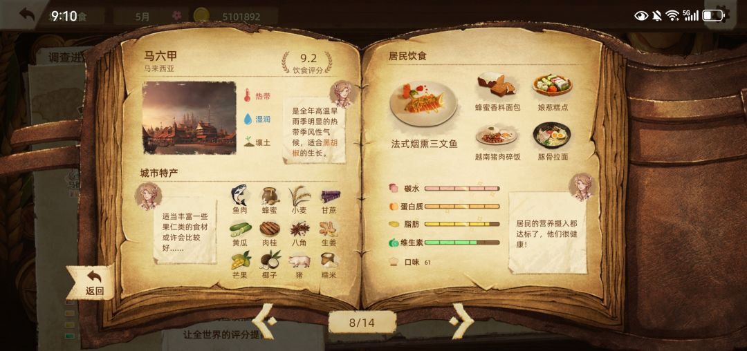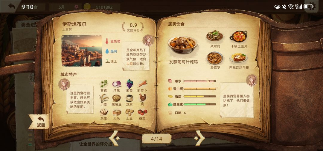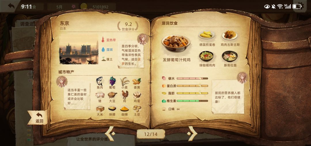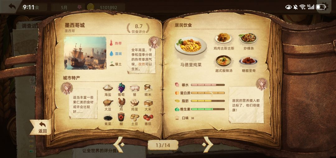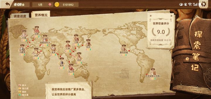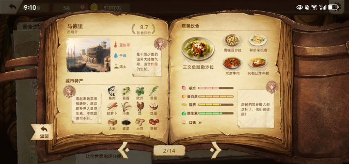 2025年1月21日下载,历经2033个回合,4月14日世界饮食评分达到9.0分,把主线任务完成了,也玩爽了,就不追求10.0分了,不然菜单页面会变得很丑。各具地方特色的美丽菜单如图所示