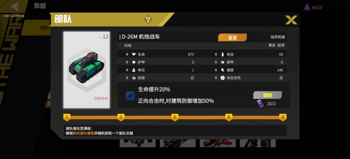 开局部队:四个机炮(机炮要可以抗住建筑,建议血量和建筑减伤,或者攻击给盾(我没有刷到过))