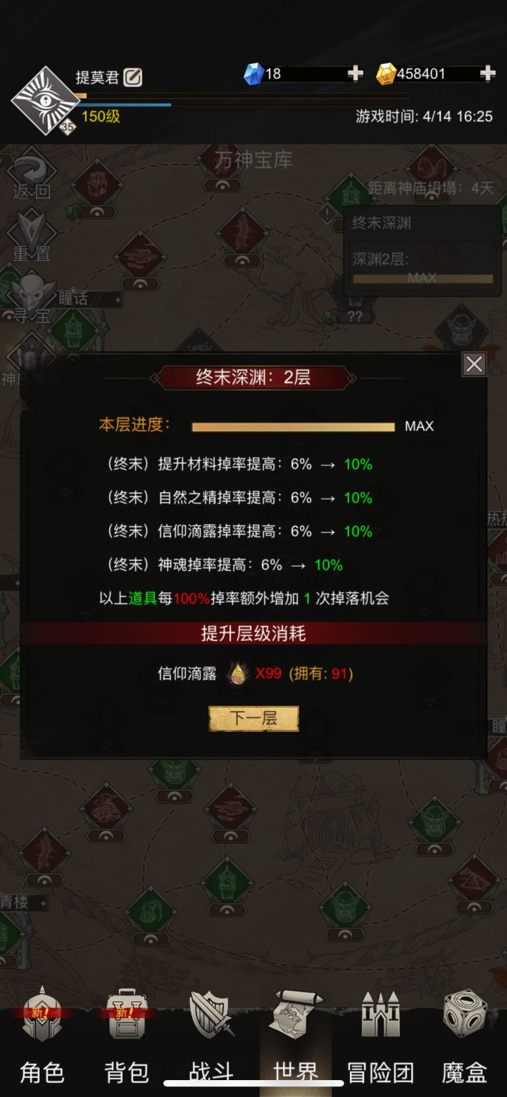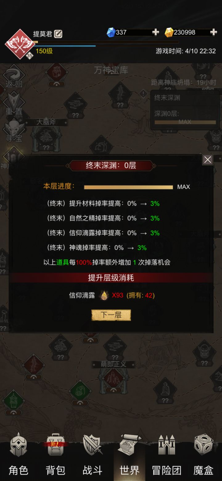 前期滴露先留着留着留着!!不要升级万神殿,随机性太大收益不稳定。