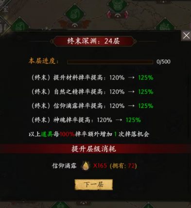 滴露要求随着终末深渊难度逐步上升。