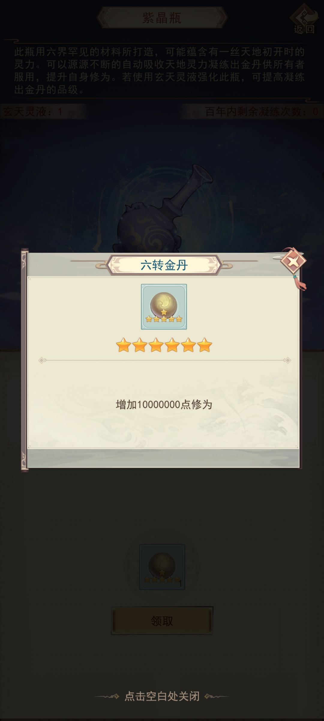 重点【紫晶瓶】暂时不使用,等突破后凝聚六转金丹