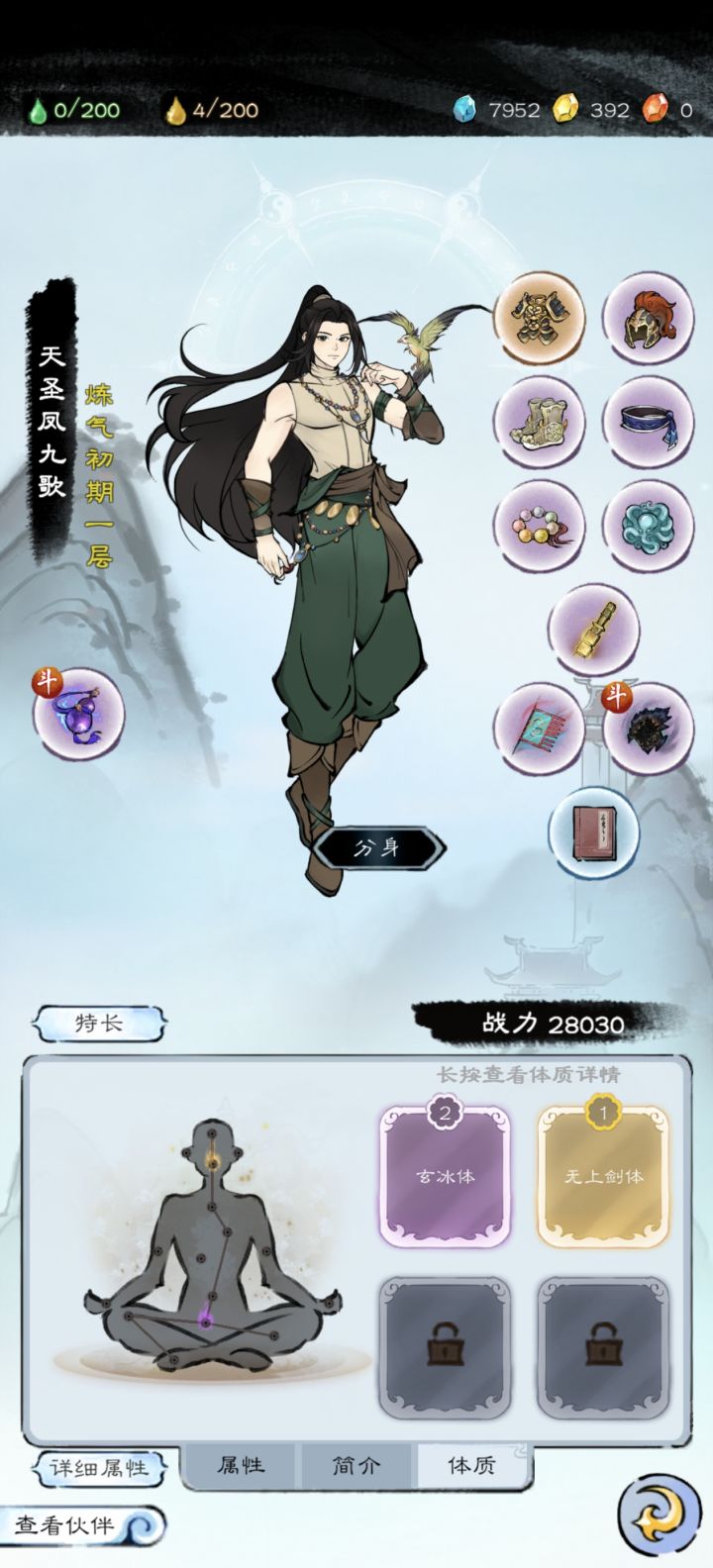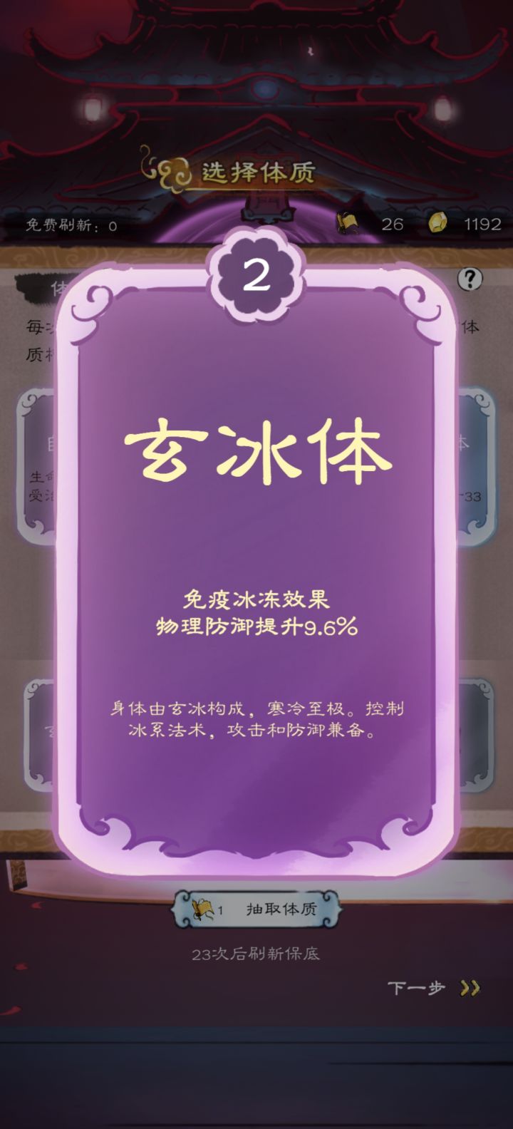 完成主线任务后,试玩转生,感谢活动送的50抽,选了玄冰体和先天剑体,感觉玄冰体免疫冰冻且加防御,很实用。
