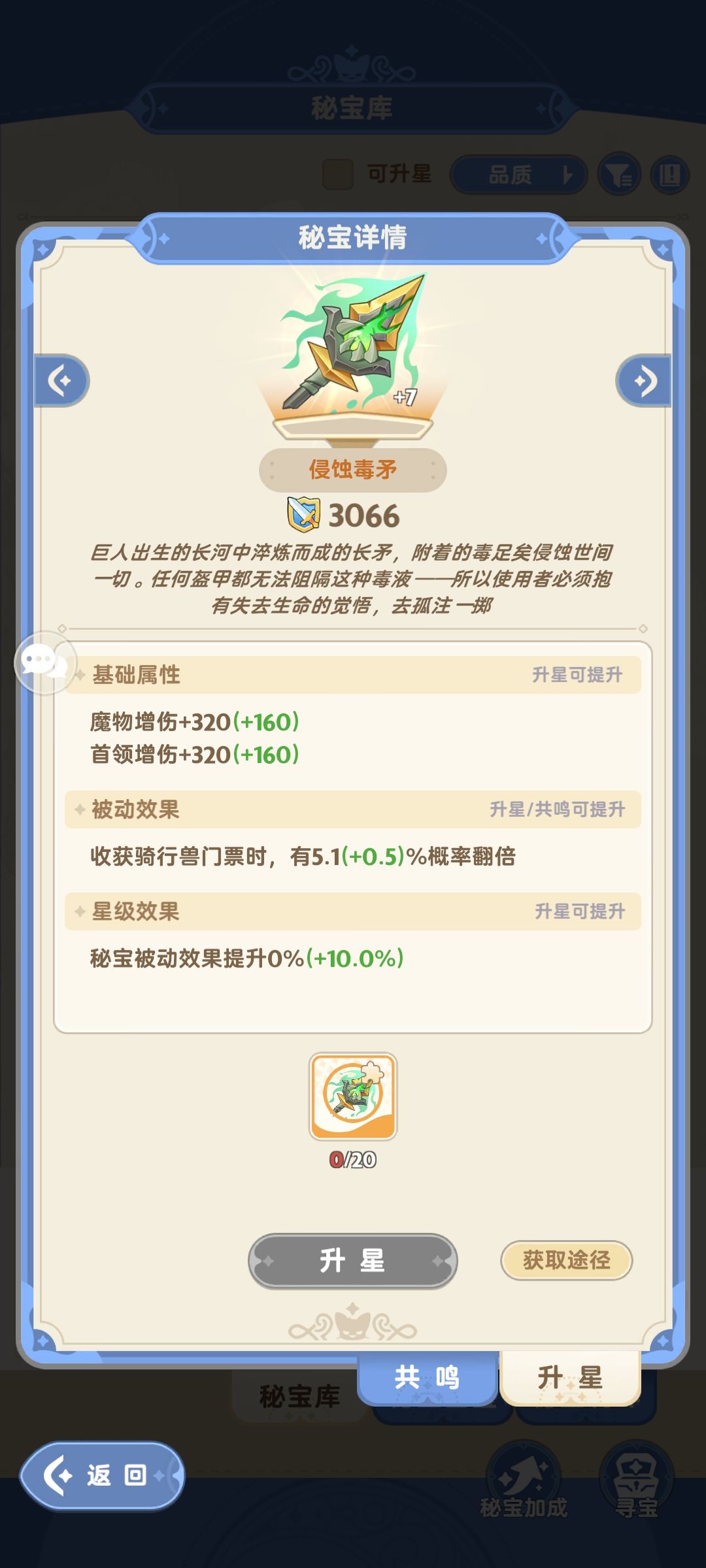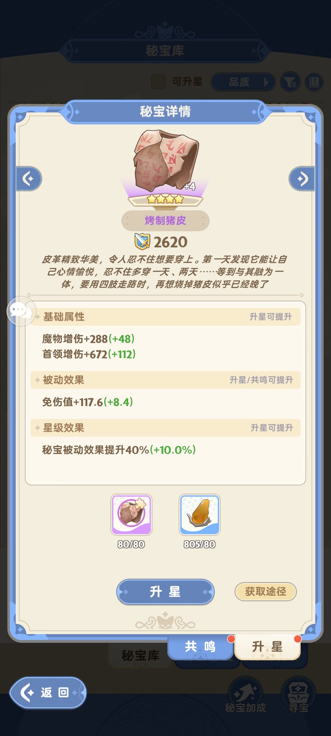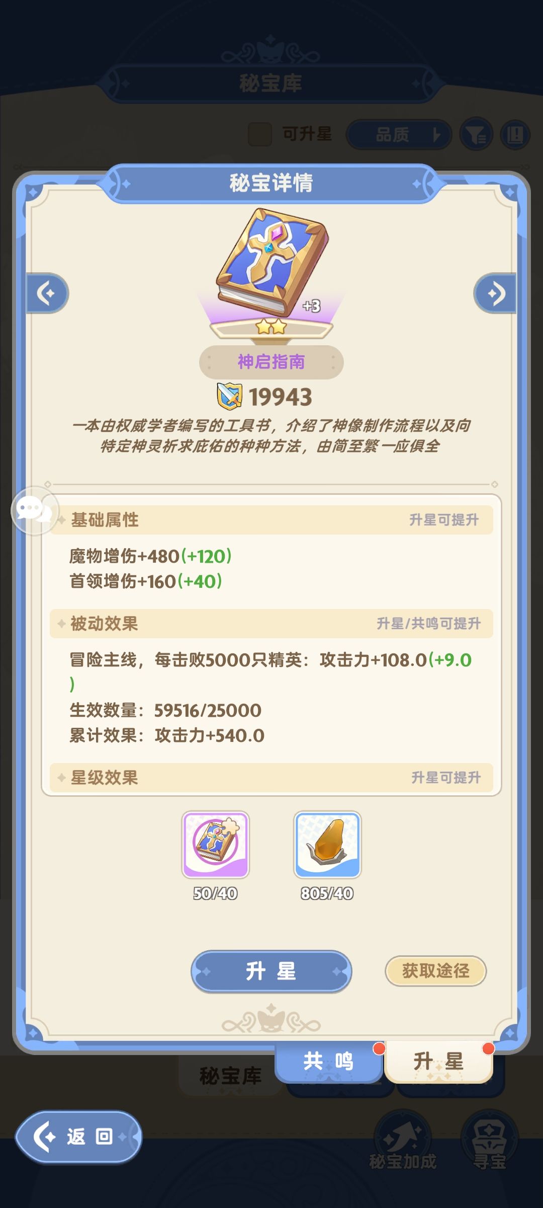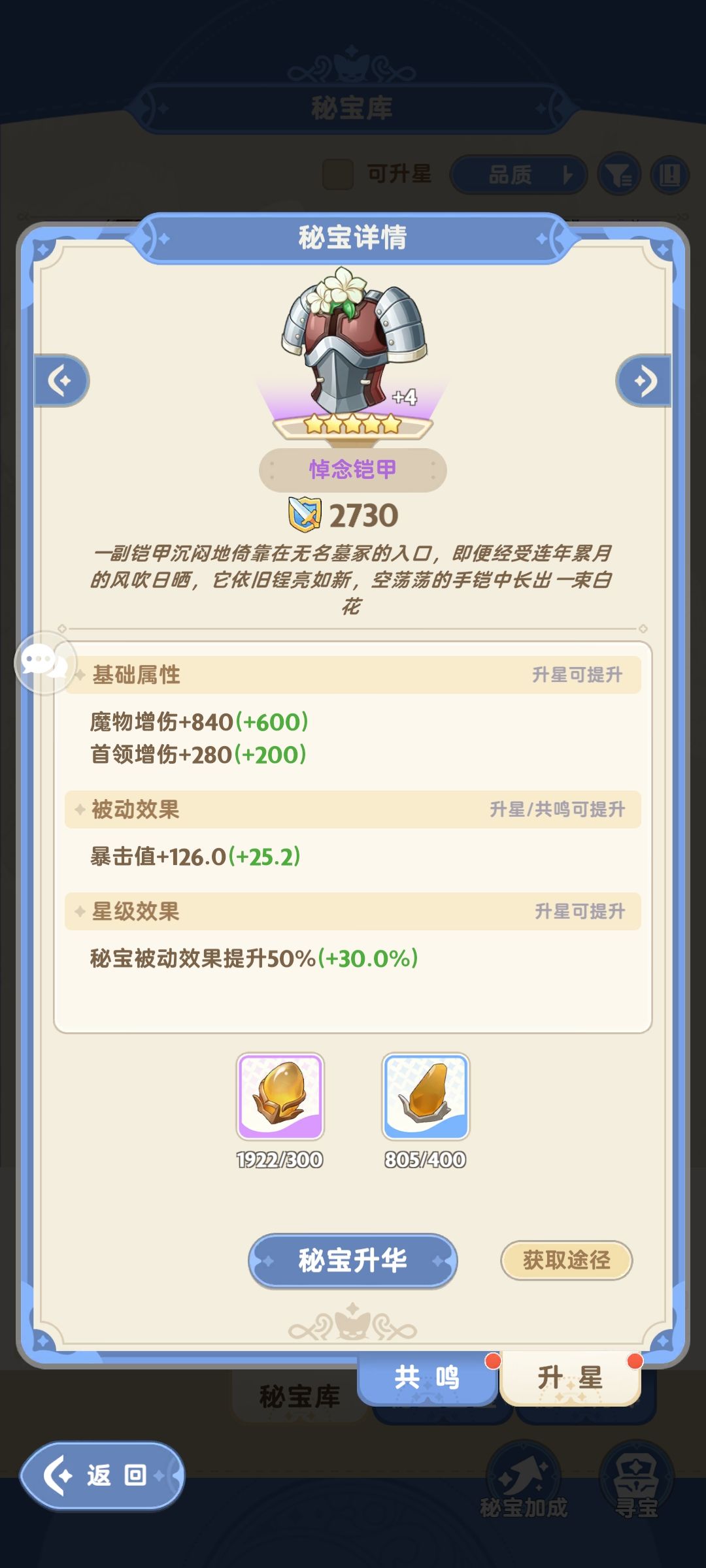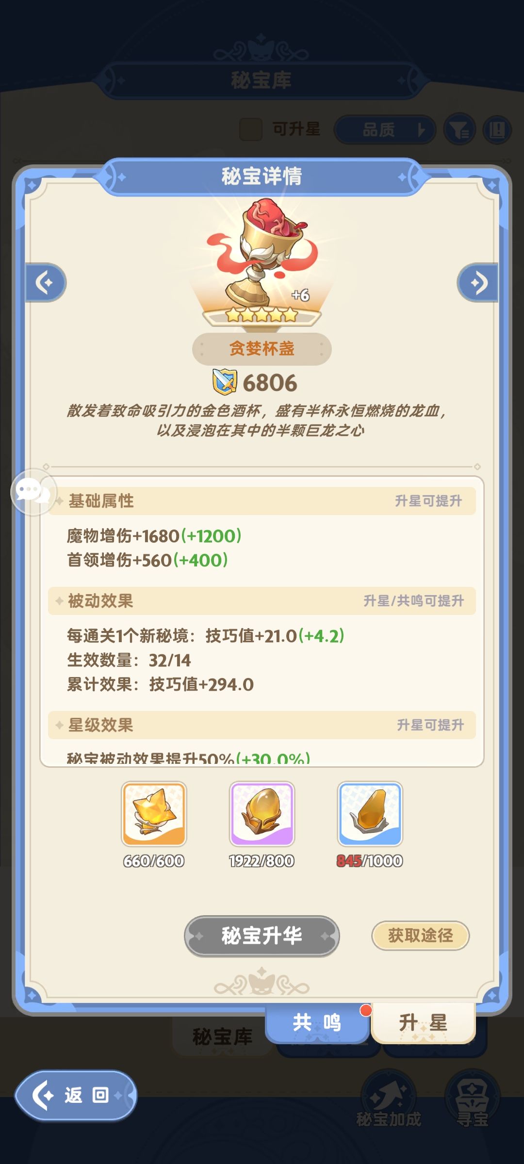 该游戏中,秘宝的升星和共鸣是无法被重置的,切忌不要哪里红了点哪里,下面介绍秘宝如何共鸣与升星,使其收益最大化。