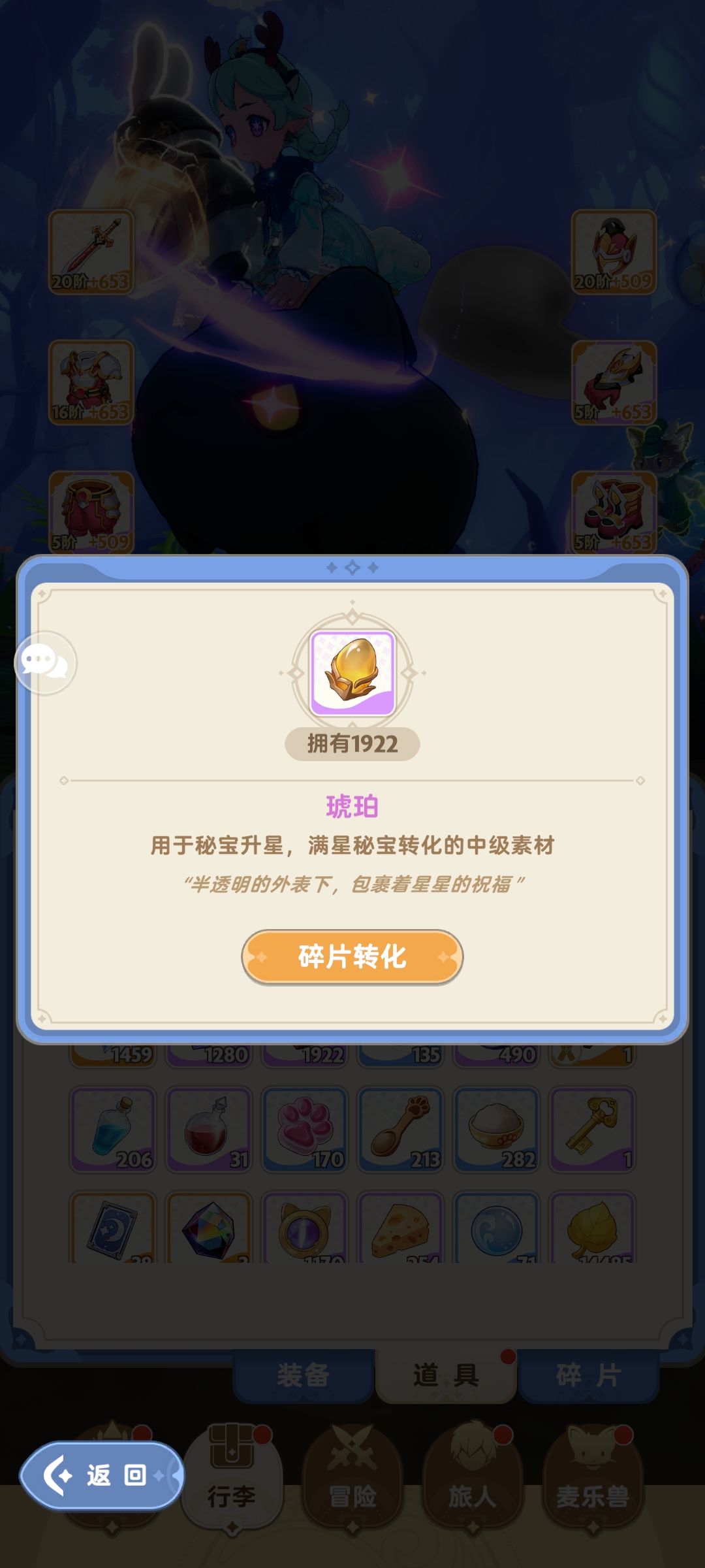 浑珀:稀有(蓝)秘宝能够升五星后,多余的碎片转化的材料