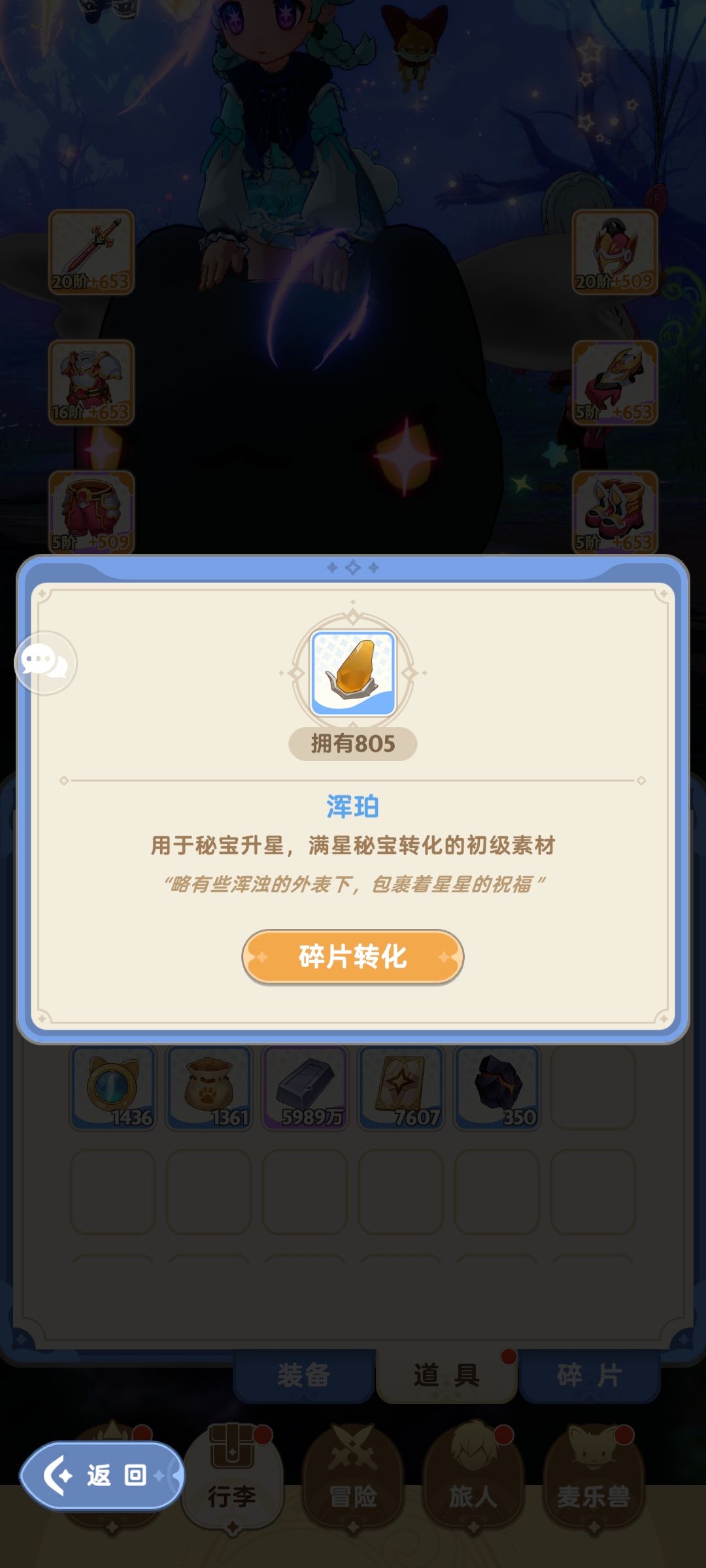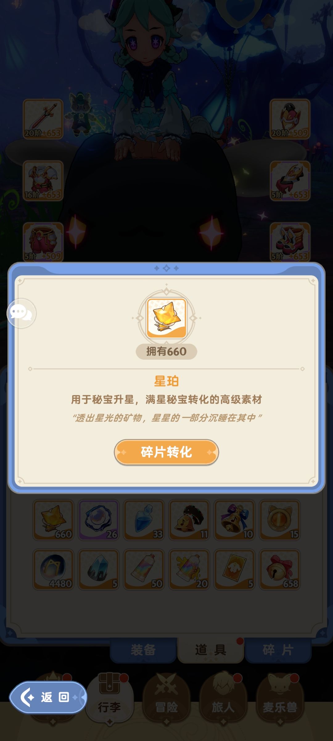 琥珀:史诗秘宝(紫)能够升五星后,多余的碎片转化的材料