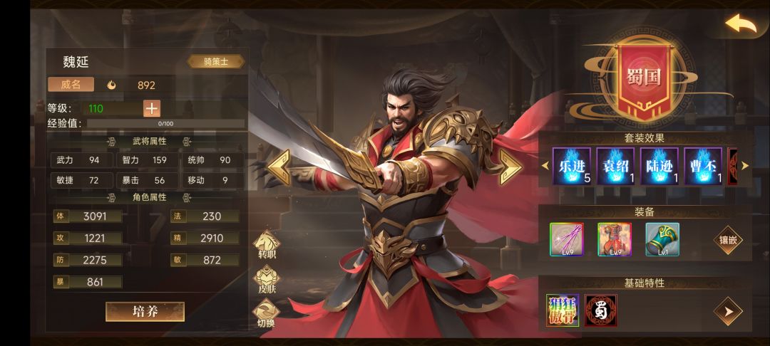 说明:这关如果有郭嘉专属2图砸死3统帅和一个特殊妖术师就简单很多,另外配置的魏延因为隐身禁用,所以换成其他骑策不屈更好,贾诩这关运气好出现在悬崖边可动,如果出现在悬崖中间无法移动就更难打。
