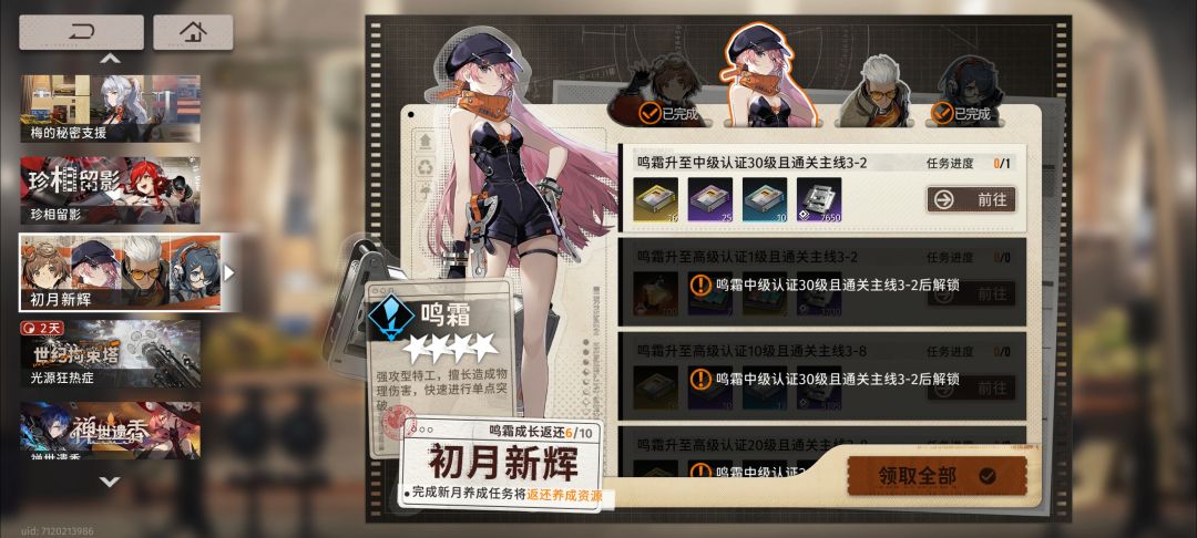 萌新开局可能会思考“该练什么”“怎么玩这个游戏”,过完新手教程抽完新手池后,可以直接照着活动里的四只养,加上新手池里的6星,可以选择3只拿来推关,建议练看版娘和第四个奶妈,因为资源会返还,不用担心资源沉没