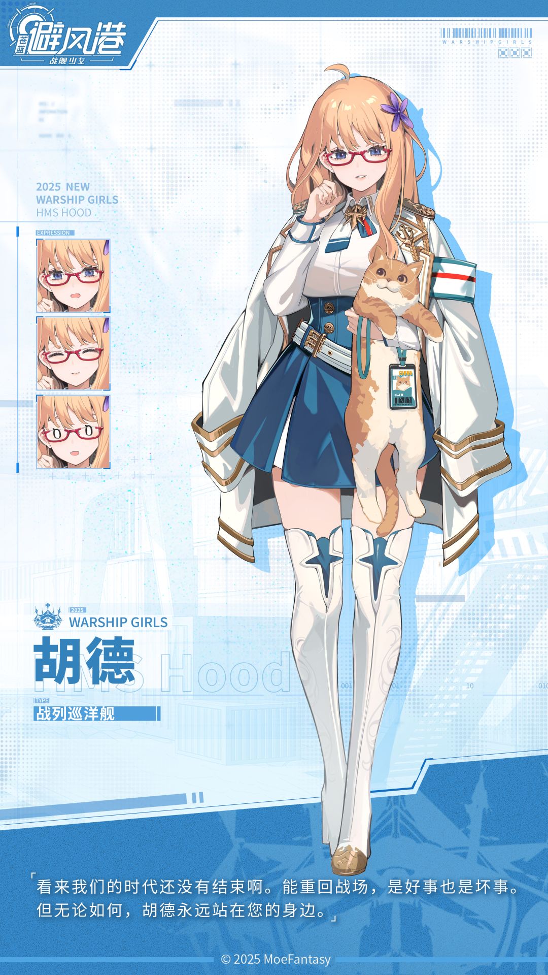 “看来我们的时代还没有结束啊。能重回战场,是好事也是坏事。但无论如何,胡德永远站在您的身边。”