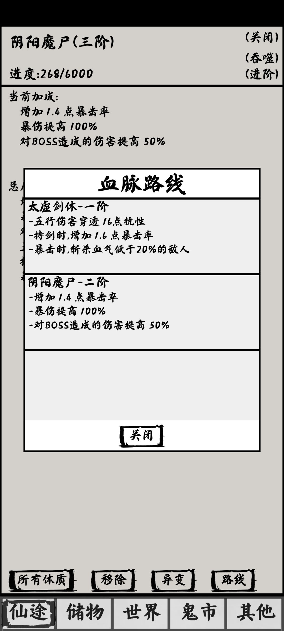 作为一个可以把自己尸化的宗门,他可以完美继承炼尸属性,所以筑基以后体质方面优先选择太虚剑体,结丹以后异变成阴阳魔尸。