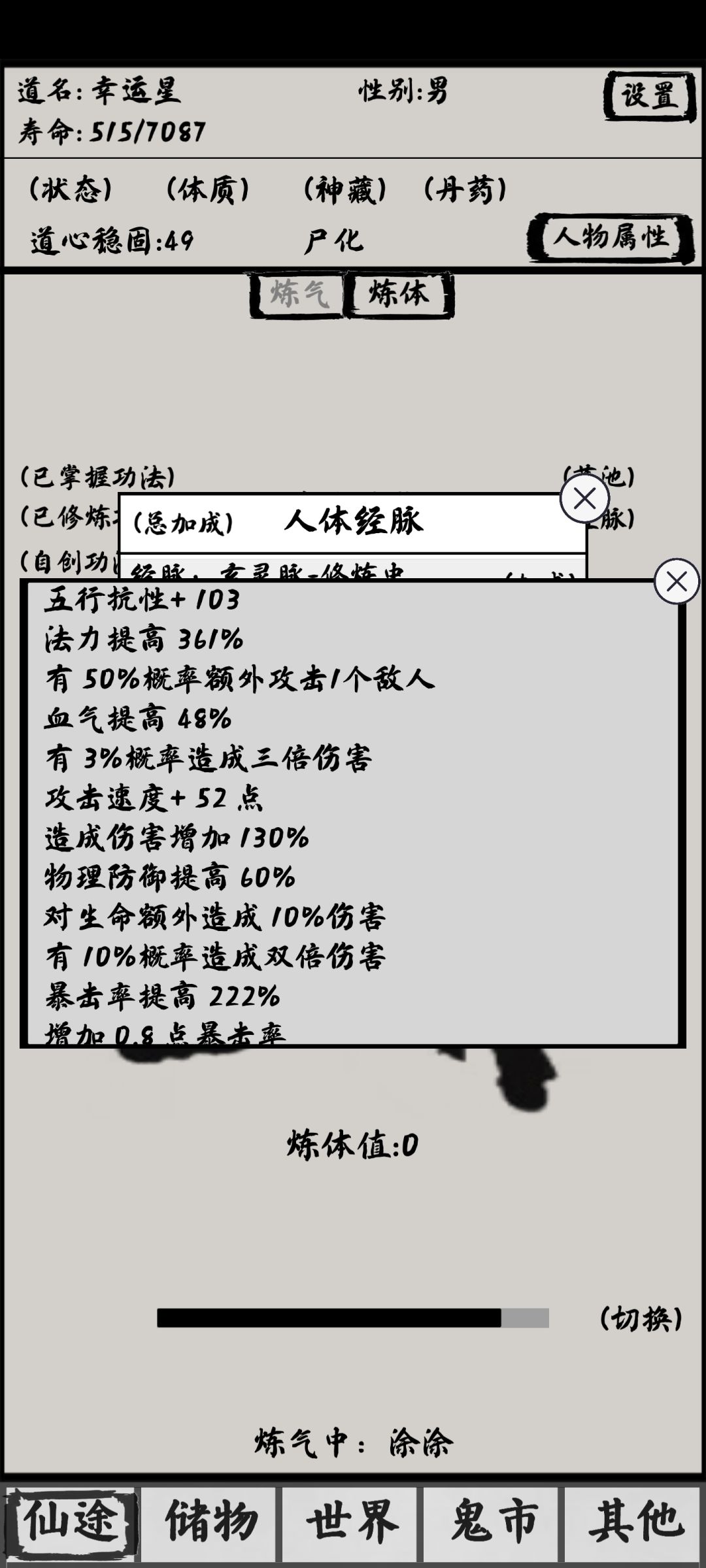 练气的时候可以在地图上多扫荡最好能扫荡出一个天道筑基灵物,这种炼尸的debuff会少很多。