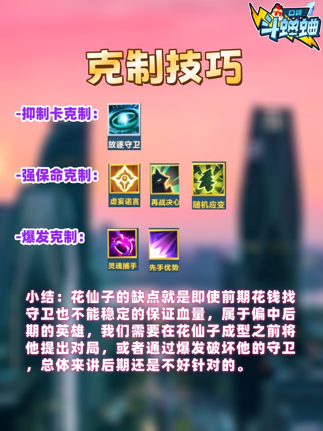 花仙子作为一个前期花钱也能打连败守卫英雄,版本改动了灵魂锁链导致史诗级加强