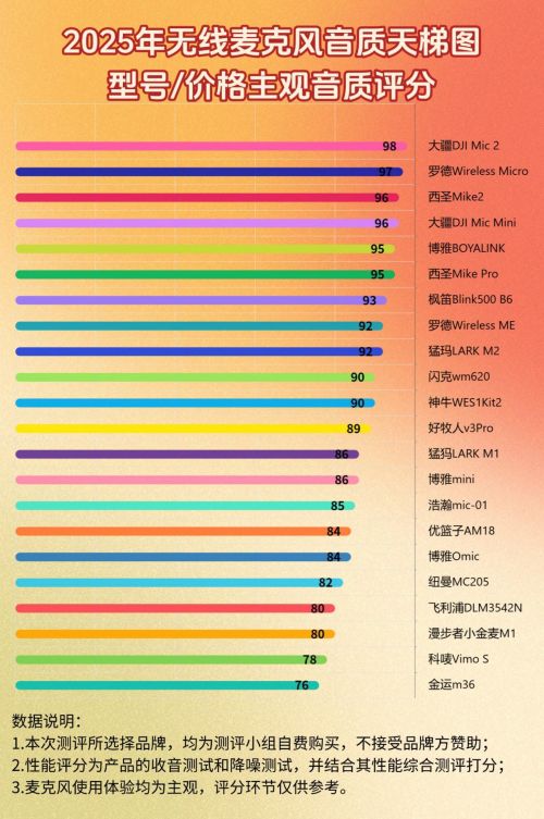 无线领夹麦克风是许多内容创作者、主播和演讲者的必备工具,它直接关系到录音和直播的音质表现。随着无线领夹麦克风市场的快速发展,市面上产品种类繁多,很多朋友在选购时常常感到困惑:到底哪些无线领夹麦克风质量更好?毕竟低质量的麦克风可能存在音质不清晰、连接不稳定、降噪效果差等问题,影响整体的录制效果。作为无线领夹麦克风的测评博主,我经过长时间的实测,整理了一份2025年度无线领夹麦克风推荐榜单,今天将与大家分享值得入手的几款性价比超高的畅销品牌。