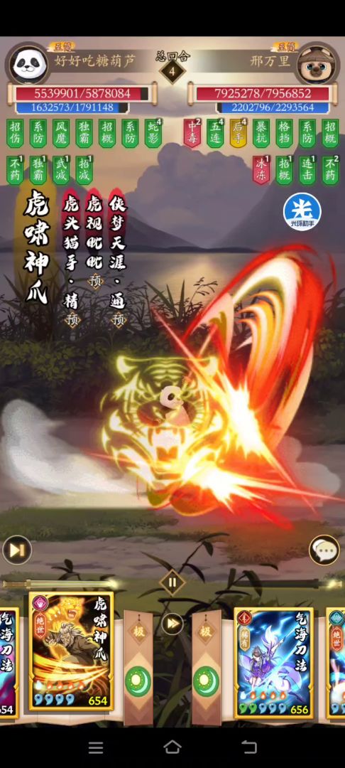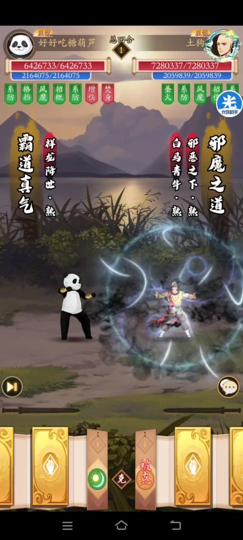 这套不建议平民玩家玩哈,太贵了,不过这套可以做到从气海开始四回合恐惧对面,邪魔拼掌还可以恐惧。
