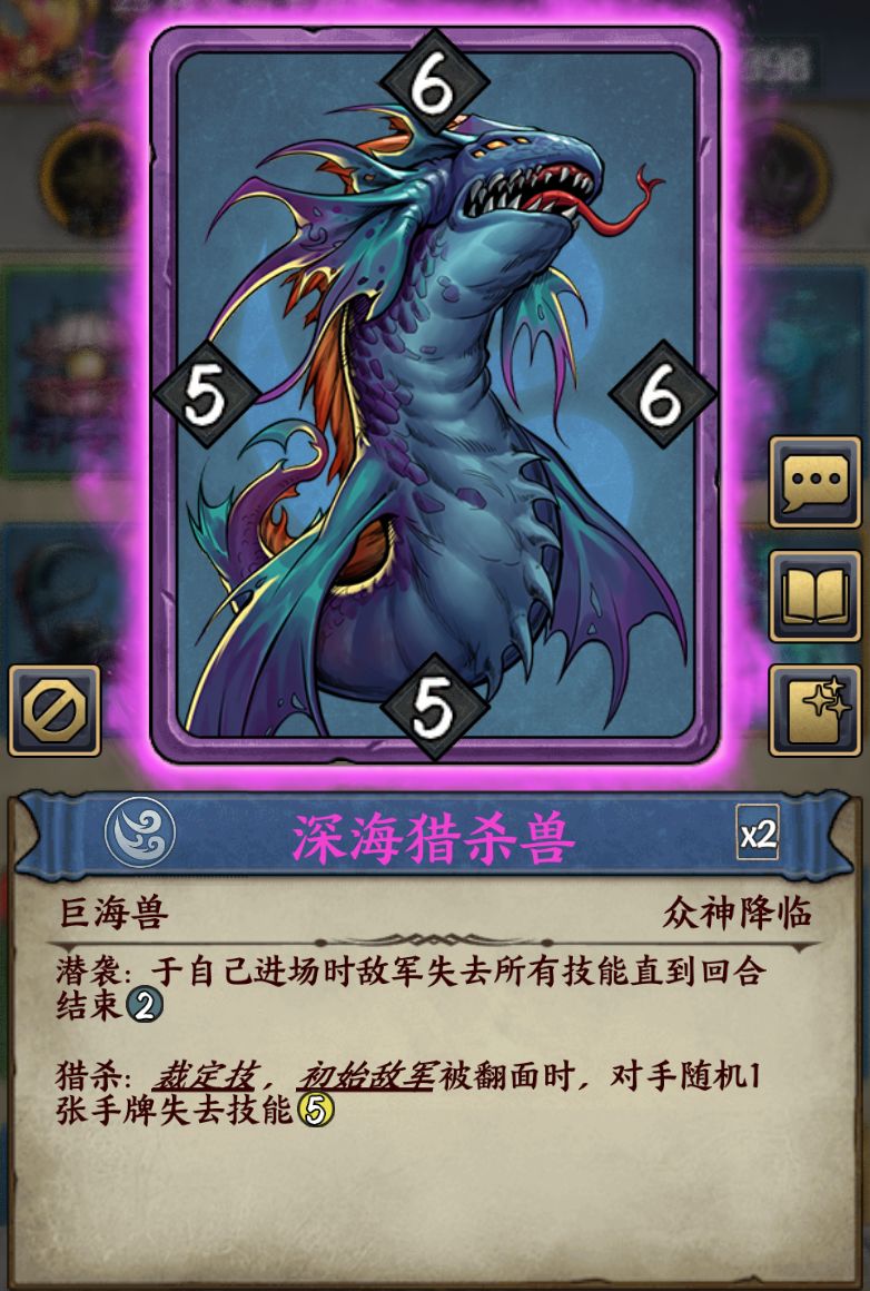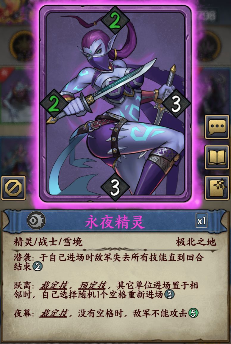 - 【潜袭】:于自己进场时敌军失去所有技能直到回合结束。