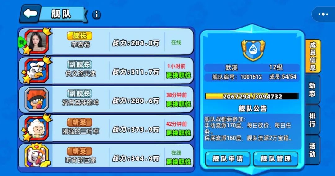 12级养老舰队1001612强势招人!全员活跃在线秒批,手动流派170层,每日砍价,每日任务,保底流派160层,舰队流派稳定2万宝箱!