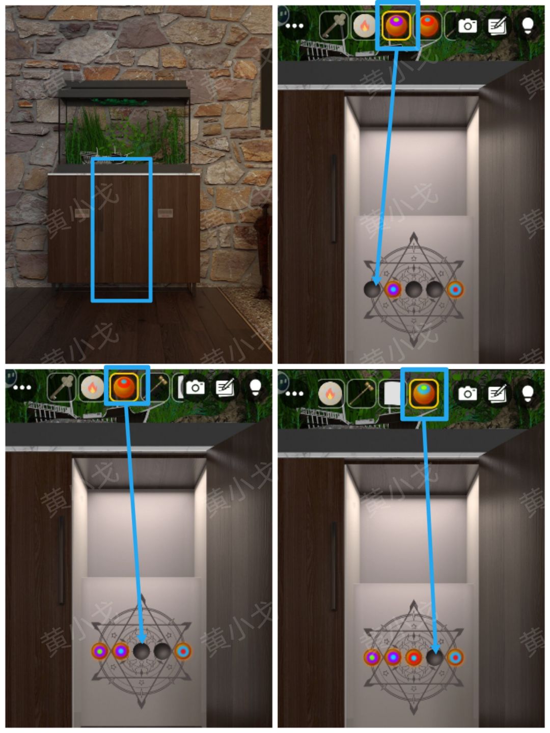 23.打开中间的柜门,放入三颗【圆球】