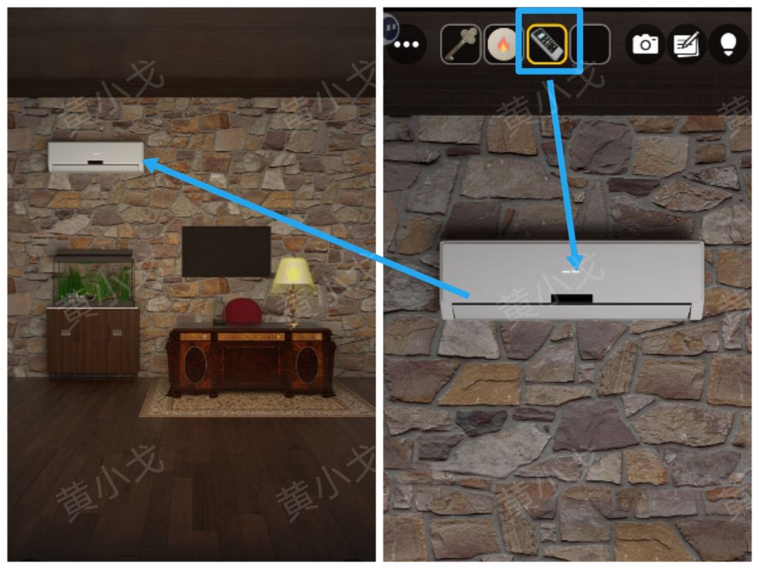 18.点击空调,用【遥控器】打开