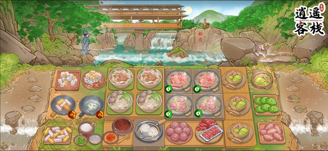 友人呼喊着去站在那块山石上学着前人般留下属于自己的痕迹,但何处不观涛,何时不赏景?文人负手而立,将这一片美景画入自己的心中。山间流淌的溪水,与山石激荡而起的水花,远处骑马而来的旅人,扛着扁担走过竹棚的小贩。一瞬间的美景在心中烙印,不需什么诗词歌赋,也不需什么画作雕刻,这幅美景独属于此时此刻的自己。而在回忆中,这景色越发美丽。