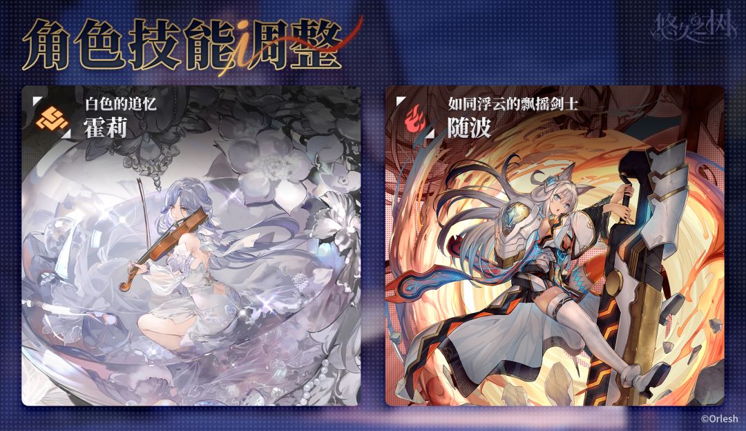 我们计划于2025年4月16日停服更新维护中,对角色[白色的追忆]霍莉、[如同浮云的飘摇剑士]随波的技能进行调整。详情如下: