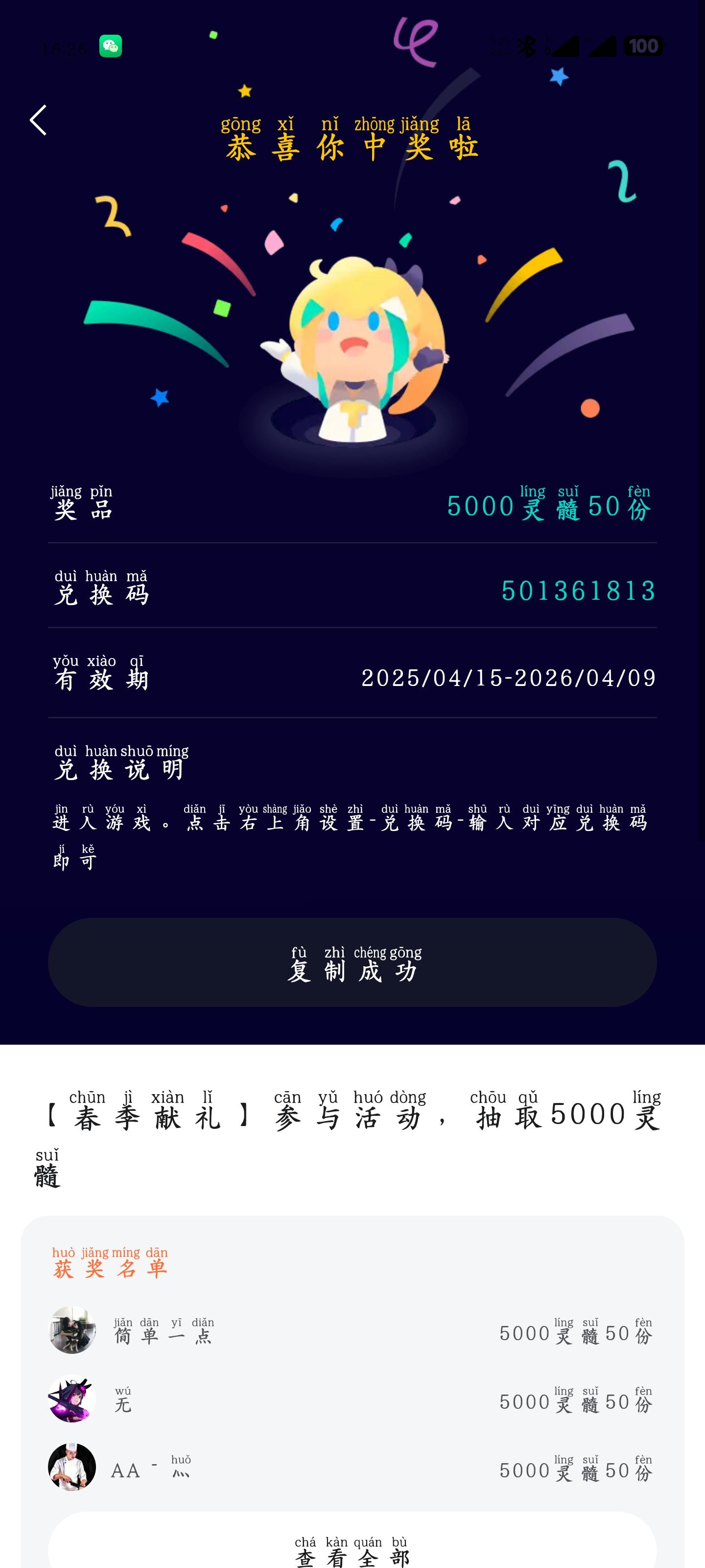 不容易啊 终于中了一次奖