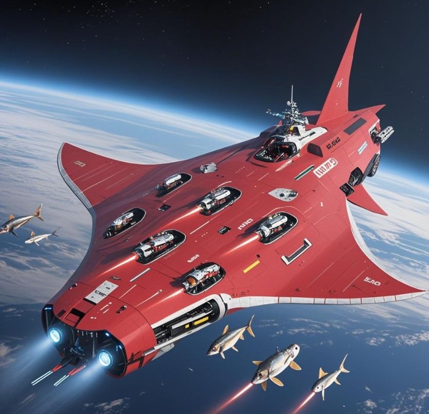 整体轮廓:模拟魔鬼鱼流畅且独特的扁平菱形身体形态。这种形状在太空中能减少阻力,尤其是在高速飞行穿越星际尘埃等物质时,相较于传统方正或圆形太空船,能更高效地前行。其宽大的 “两翼” 可设计为具备多功能的部件,不仅能在视觉上给人强烈的科幻感,还能承担实际功能。