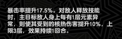 而触电异常的效果是:遭受暴击率提升10%。所以作为一个增加暴击率的辅助已经非常不错了。