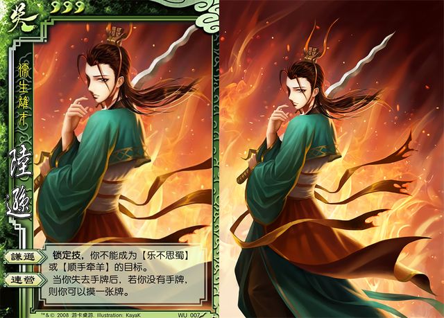 有这样一个技能,被称为卡牌游戏里上限最高的神技之一,那就是三国杀陆逊的“连营”:每当你打出最后一张手牌时,便抽一张牌。这意味着只要运气合适,你将能够实现无限操作。