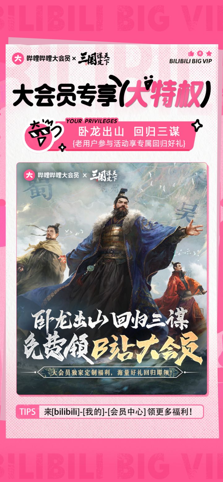 《三国:谋定天下》X哔哩哔哩大会员活动火热进行中,乔妹为主公们奉上了多重好礼,快来一起看看吧!