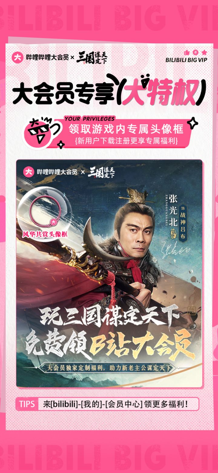 同时,我们为大会员主公准备的专属活动也在火热进行中。3月14日至4月30日活动期间,参与活动并达成奖励条件,即可领取:《三国:谋定天下》大会员专属限定头像框「风华共赏」、大会员专属表情「小电视表情包」等海量好礼!